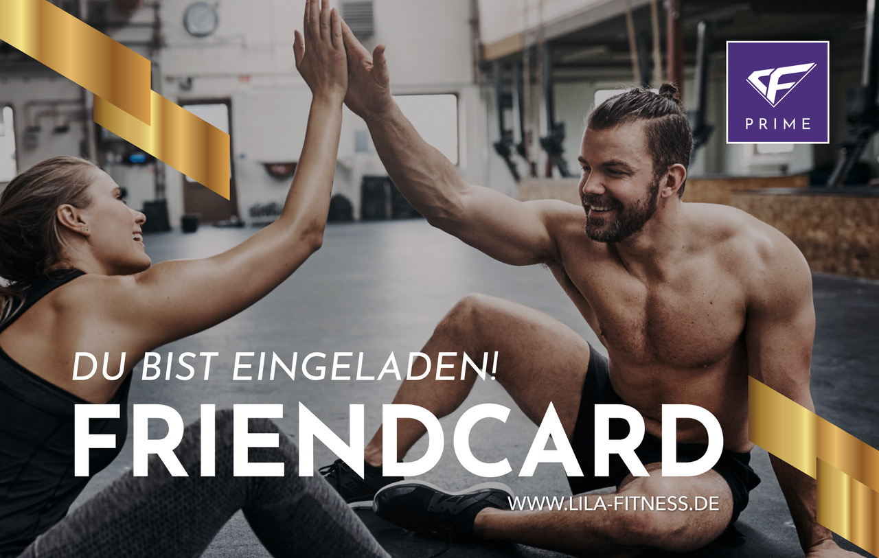 NEU! Friend Card bis 31.12.2026 Dein Training wird zum Erlebnis. Am Wochenende (Sa & So) trainiert eine Begleitperson deiner Wahl kostenlos mit dir. Der Zutritt erfolgt über die separate Friend-Card für deinen Gast. Diese Leitung ist bis zum 31.12.2026 GRATIS enthalten.